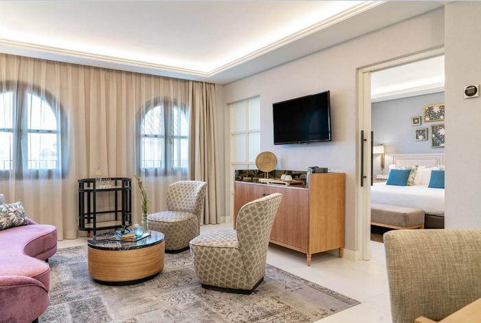 La Junior suite Deluxe Room dispose d'un salon, d'une chambre séparée et d'une salle de bains avec douche et articles de toilette gratuits. La suite junior est climatisée et dispose d'un minibar, d'une bouilloire, d'une armoire et d'une télévision à écran plat.